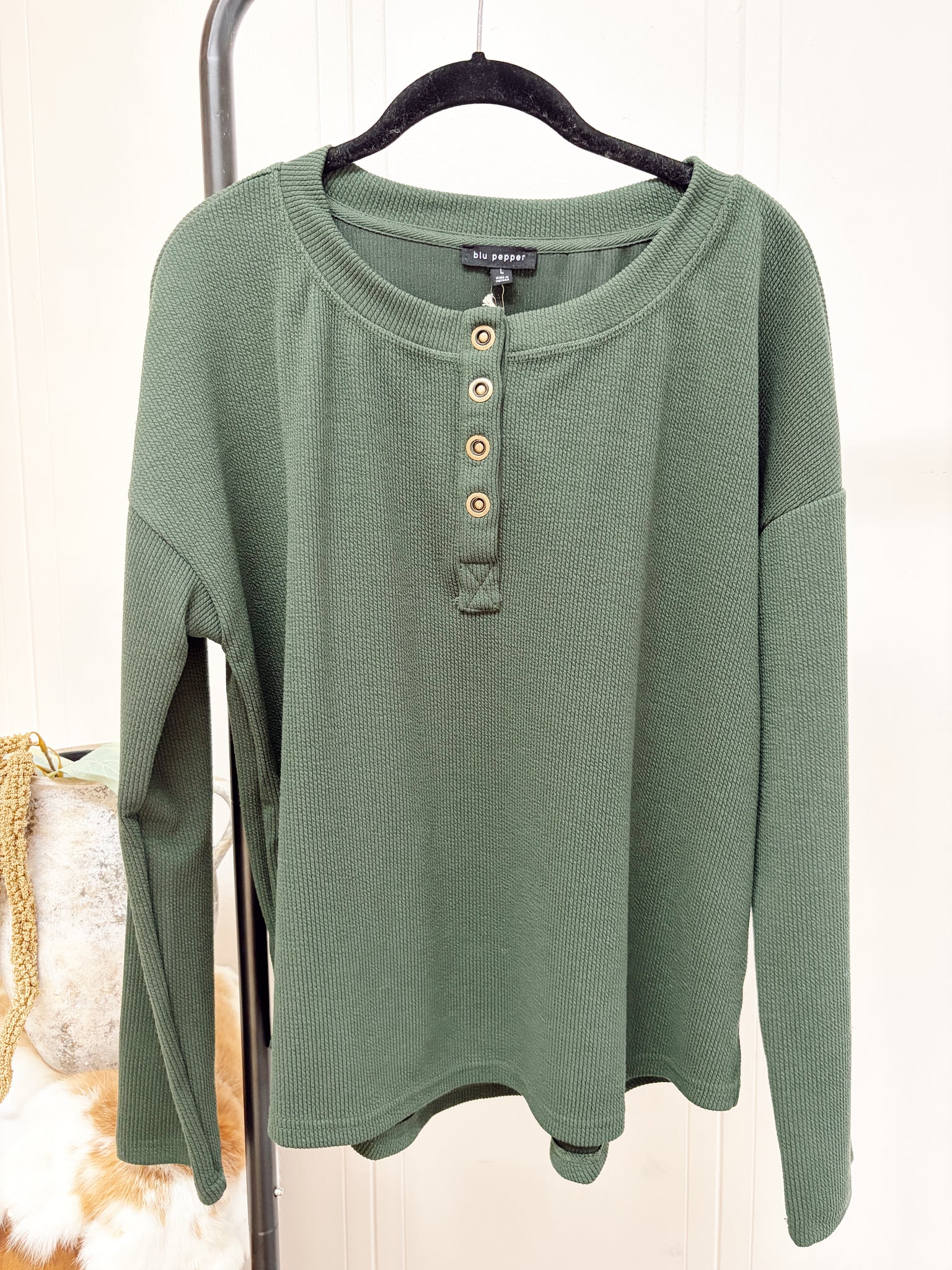 Hunter Green Henley Long Sleeve