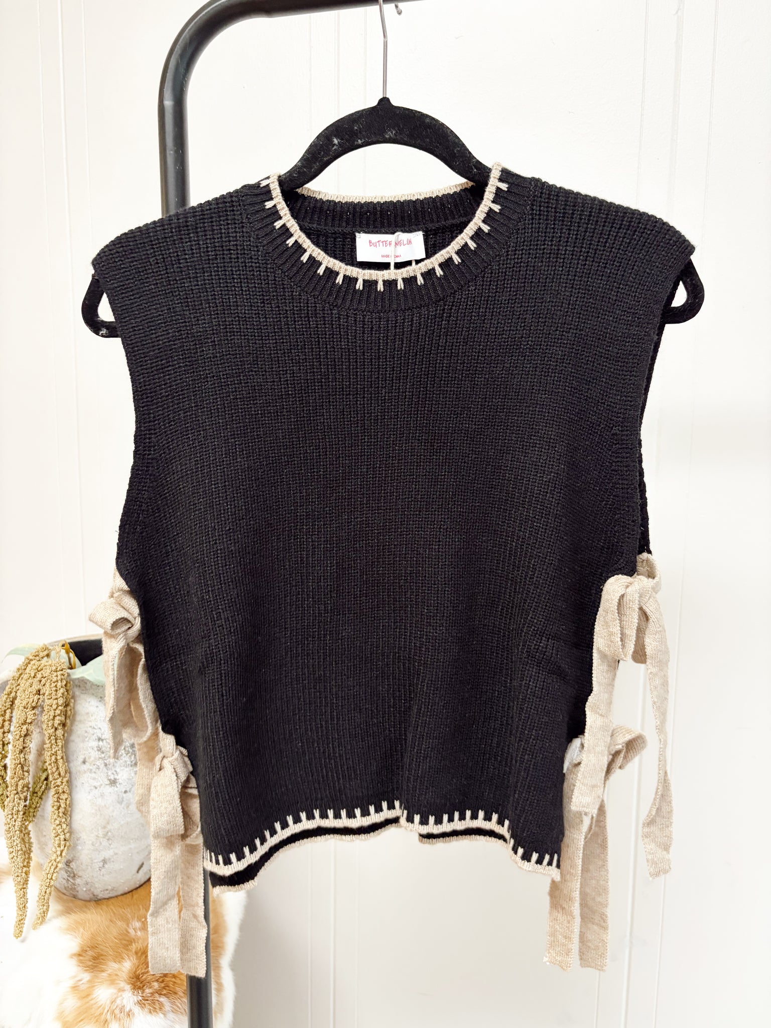 Side Tie Detail Sweater Vest